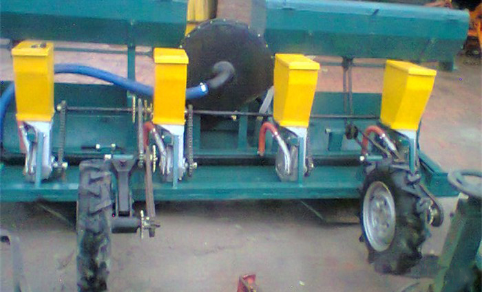 Pneumatic bed planter is used for precision Sowing of cotton or corn seeds on the ridges for better growth and water management. The strong Vacuum Fan helps each seeding unit to suck and pickup each individual Hybrid seed and place on required spacing of plant to plant, to attain the maximum required Plant Population (usually 30,000 to 35,000) for max. yield and place a fertilizer band of 2 - 2.5 below the seed and form required sized Furrows for best water management.